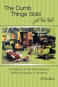 Sold Just Like That Living full time in an Recreational Vehicle, you tend to do quite a bit of research on the RV industry itself. You’re always looking at the newer models to see what day-to-day items have changed and what new items will make your life simpler. This 25’ Travel Trailer is our home, so you try and make it as comfortable as possible. What better place to look then the past? Wandering the country side is not new, RVing has been around since the automobile first began; it actually began long before the invention of the Horseless Carriage. The Covered Wagon was an RV for the Cowboys, the horse-drawn houses used in Gypsy Caravans who roamed Central Europe centuries before the invention of the Automobile; the Davy Crockett and Daniel Boone of our past were simply RVers of their century. What started as a necessity for travel, became a luxury item for camping and has now became an accepted lifestyle for millions of us; it all began with Dumb Things Sold Just Like That. Reading the book, Dumb Things Sold Just like That – A History of the Recreational Industry in America by Al Hesselbart, was like looking into a time capsule of the RV Lifestyle. Sure I thought I knew RVing as we know it today. The lifestyle that goes along with it had been around since the invention of the automobile, but I was amazed at how elaborate these “House Trailers” were in the early 1900’s. Imagine the difference between packing up the SUV in these modern times, loading all the conveniences of home in your Travel Trailer and heading North for the weekend, compared to traveling in a Model T pulling a one-of-a-kind trailer on the so-called roads of the mid-1900’s. The average speed was only 10-15 mph! My have we grown soft. The